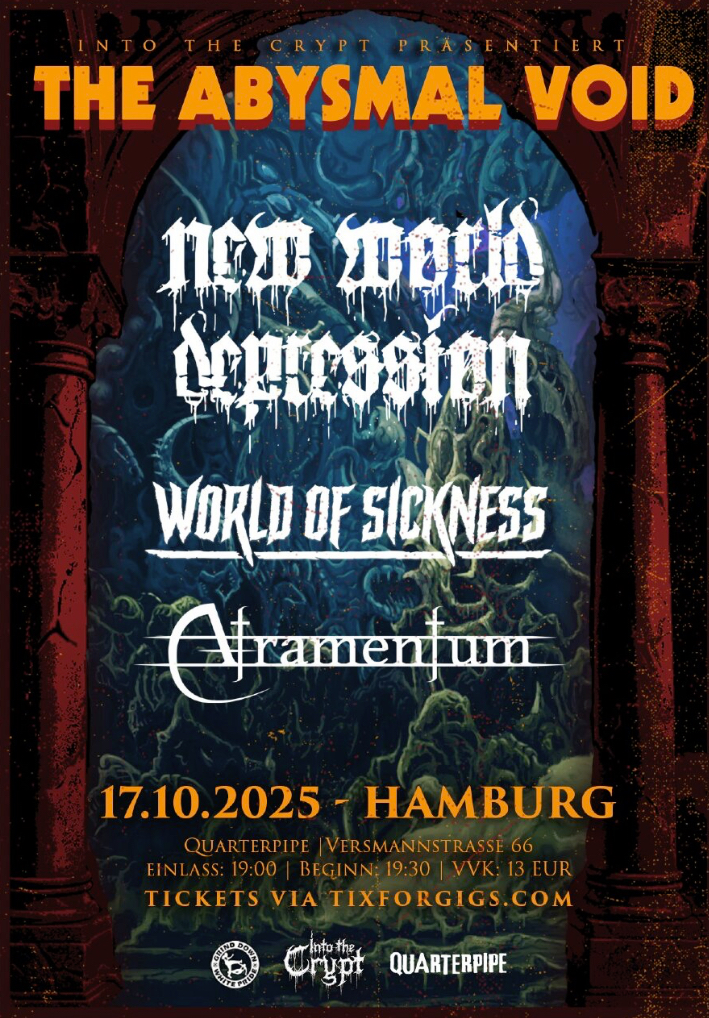 The crypt opens its gates in yet another location of Hamburg to celebrate an evening of loud music and lovely people! Get ready for some serious dancing in the pit, neck breaking or whatever suits your grind! INTO THE CRYPT and Quarterpipe present: New World Depression, World Of Sickness, Atramentum Doors: 19:00 Uhr Start: 19:30 […]