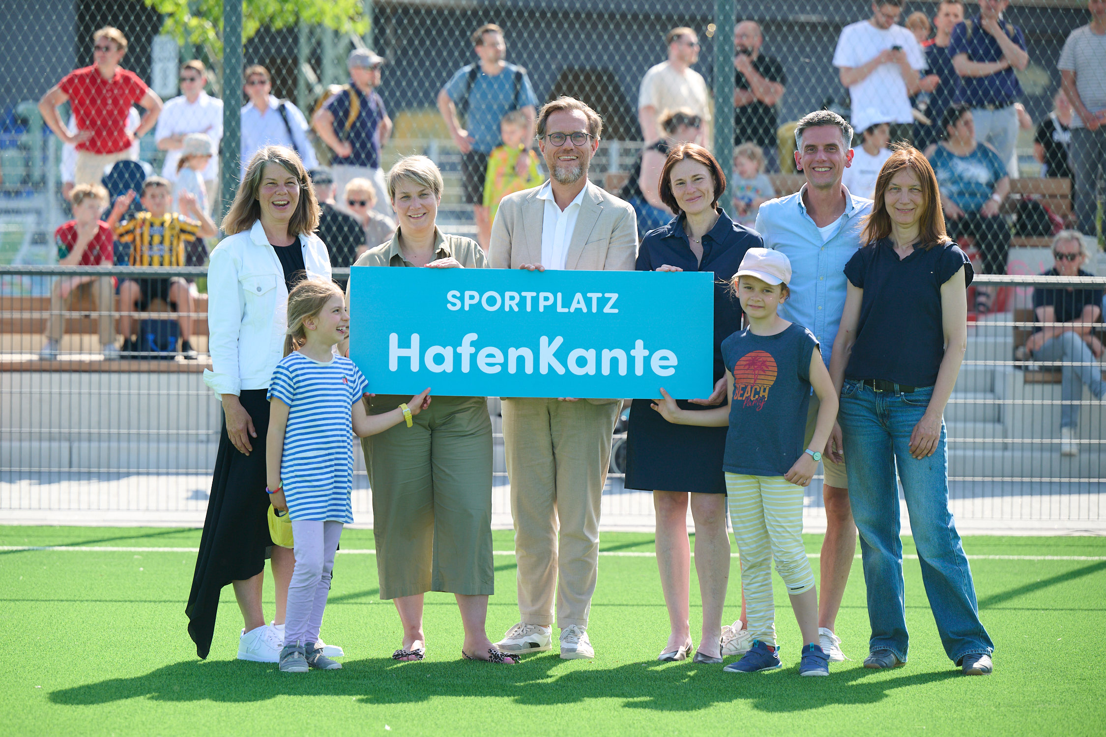 Der Name „Sportplatz HafenKante“ wurde im Vorfeld gemeinsam mit dem Quartier ausgewählt und am Freitag vom Vorstand des Quartiermanagement HafenCity e.V. feierlich bekannt gegeben. Ein Name, der das Zusammenspiel von Stadt, Wasser und Gemeinschaft perfekt widerspiegelt.