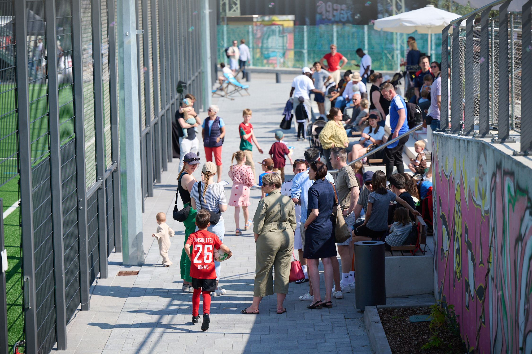 Am Freitagnachmittag, den 20.06.2025 wurde im Oberhafen gefeiert, gekickt und eingeweiht: Der neue Sportplatz HafenKante wurde offiziell eröffnet – mit einem bunten Familienfest und einem lebendigen Fußballturnier mitten im Herzen der HafenCity.